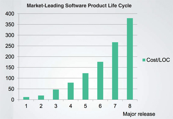 What caused this remarkable change in productivity? Why was the code 40 times more expensive to produce in release 8 as opposed to release 1?