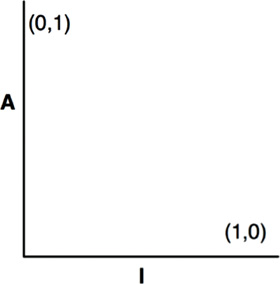 Since we cannot enforce a rule that all components sit at either (0, 1) or (1, 0), we must assume that there is a locus of points on the A/I graph that defines reasonable positions for components. We can infer what that locus is by finding the areas where components should not be—in other words, by determining the zones of exclusion (Figure 14.13).