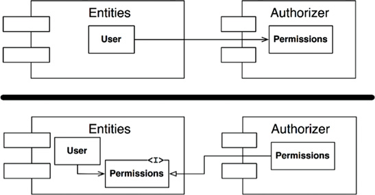 图 14-3: Inverting the dependency between Entities and Authorizer